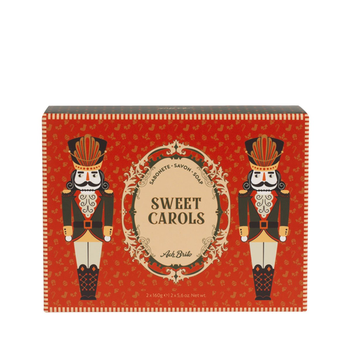 Ach. Brito Sweet Carols Tvålbox är en charmig tvålduo inspirerad av barnlitteraturens klassiker. Boxen innehåller två lyxiga handtvålar tillverkade med en vegetabilisk bas som vårdar huden och ger en varm doft. Kombinationen av mjuka toner från varm mjölk, kokosnöt, vanilj och kanderat socker ger känslan av ljuva julstunder. Tvålarna tillverkas i Portugal med traditionella metoder och speglar varumärket Ach. Britos välkända kvalitet och hantverk. Egenskaper: Skonsamma och närande för huden Tillverkade med vegetabilisk tvålbas SPECIFIKATIONER: 2 x 160 g