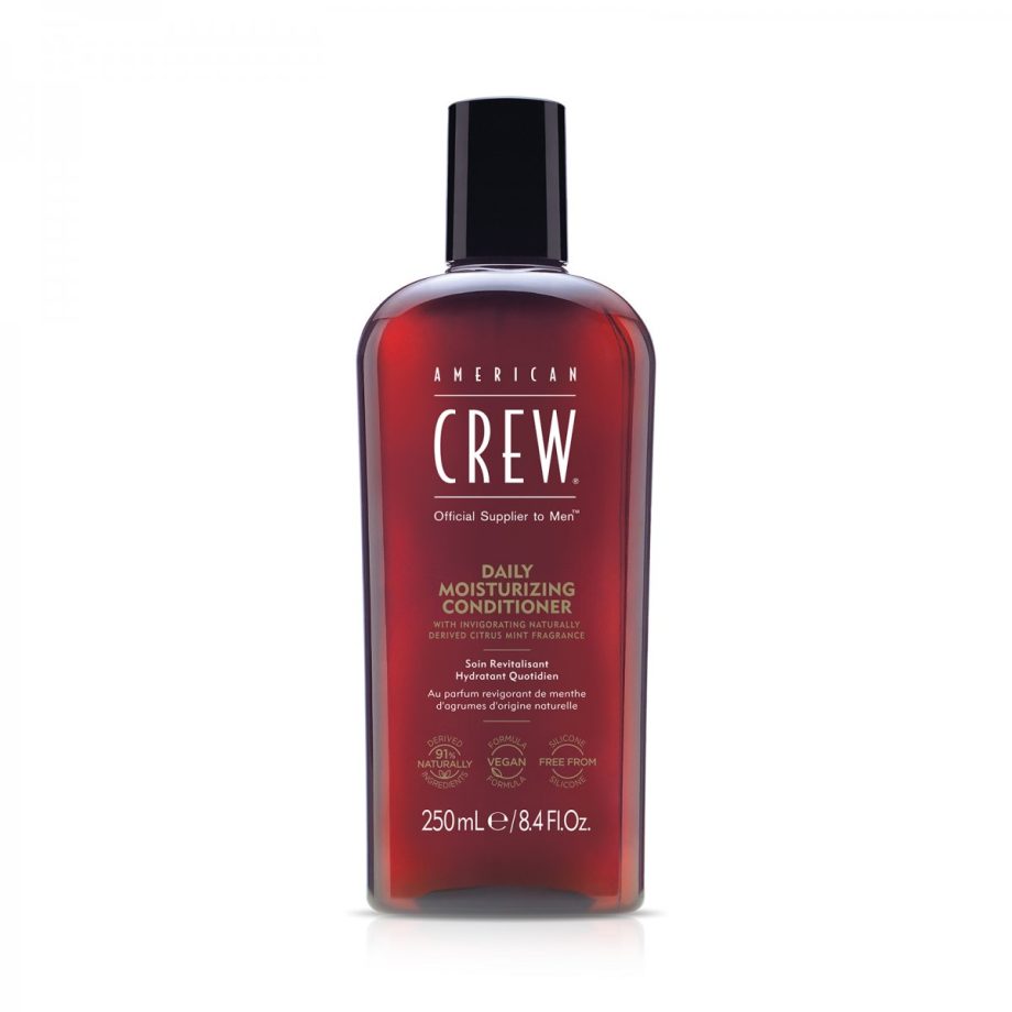 American Crews trippelverkande Daily Moisturizing Conditioner är ett balsam som verkar reparerande, stärkande och skyddande. Håret blir mjukt och lätthanterligt, redo för att stylas. Passande för män med normalt till torrt hår. Användning: Massera en liten mängd jämt fördelat i hår och skalp efter schamponering. Skölj noggrant. Använd gärna tillsammans med American Crew Daily Deep Moisturizing Schampo. Volym: 250 ml.