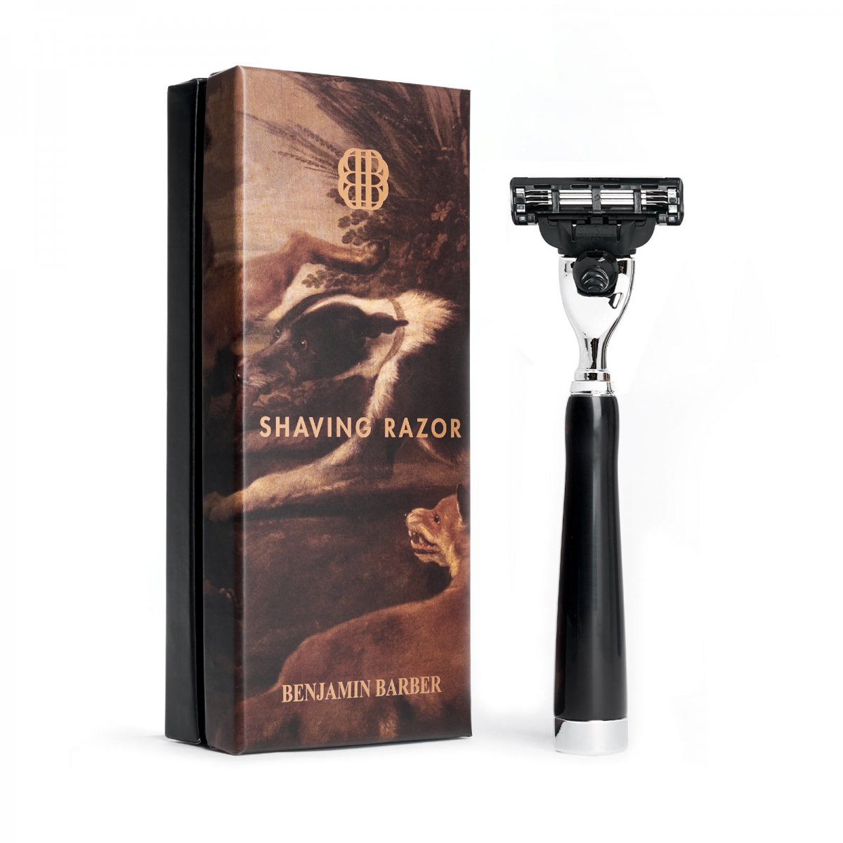 Stilren och klassisk mach3-rakhyvel från kvalitetsmärket Benjamin Barber. Hyveln är tillverkad med inspiration från det brittiska arvet och har en prestanda som få andra kan mäta sig med. EGENSKAPER Tillverkad i svart resin, rostfritt stål och zinklegering Kompatibel med Mach3-rakblad från Gillette Klassisk design med brittisk inspiration Ger överlägsen prestanda för nära rakning SPECIFIKATIONER Tillverkad i svart resin, stainless steel och zinklegering. Används tillsammans med Mach3-rakblad från Gillette.