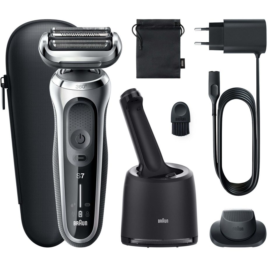 Braun Series 7 rakapparat för män med 360° anpassning för en smidig rakning. Med AutoSense-teknik som läser av och anpassar sig efter skäggets täthet, och tar fler hårstrån i varje rakning. Litiumjonbatteriet ger upp till 3 veckor av rakning och 5 minuters snabbladdning. Denna rakapparat är 100 % vattentät och kan användas i både våta och torra förhållanden. Kompatibel med EasyClick-system. Förpackningen innehåller: 1 st Series 7 Rakapparat för män 1 st Precisionstrimmertillbehör 1 st SmartCare-center 1 st Resefodral 1 st Smart kontakt för automatisk anpassning efter olika strömtyper, 100–240 volt 1 st Rengöringsborsterakapparat för män med 360° anpassning för en smidig rakning, även i svåråtkomliga områden, effektiv på alla typer av skägg: autosense-teknik som läser av skägget och anpassar motorns kraft efter skäggtätheten och fångar in och klipper mer hår i varje drag, litiumjonbatteri för upp till 3 veckor av rakning (50 min). 5 minuters snabbladdning för en rakning, 100 % vattentät och kan användas i både våta och torra förhållanden, smartcare-center och precisionstrimmertillbehör för trimning av mustasch och polisonger ingår Braun Series 7 71-S7200cc Elektric Shaver with Precisiontrimmer