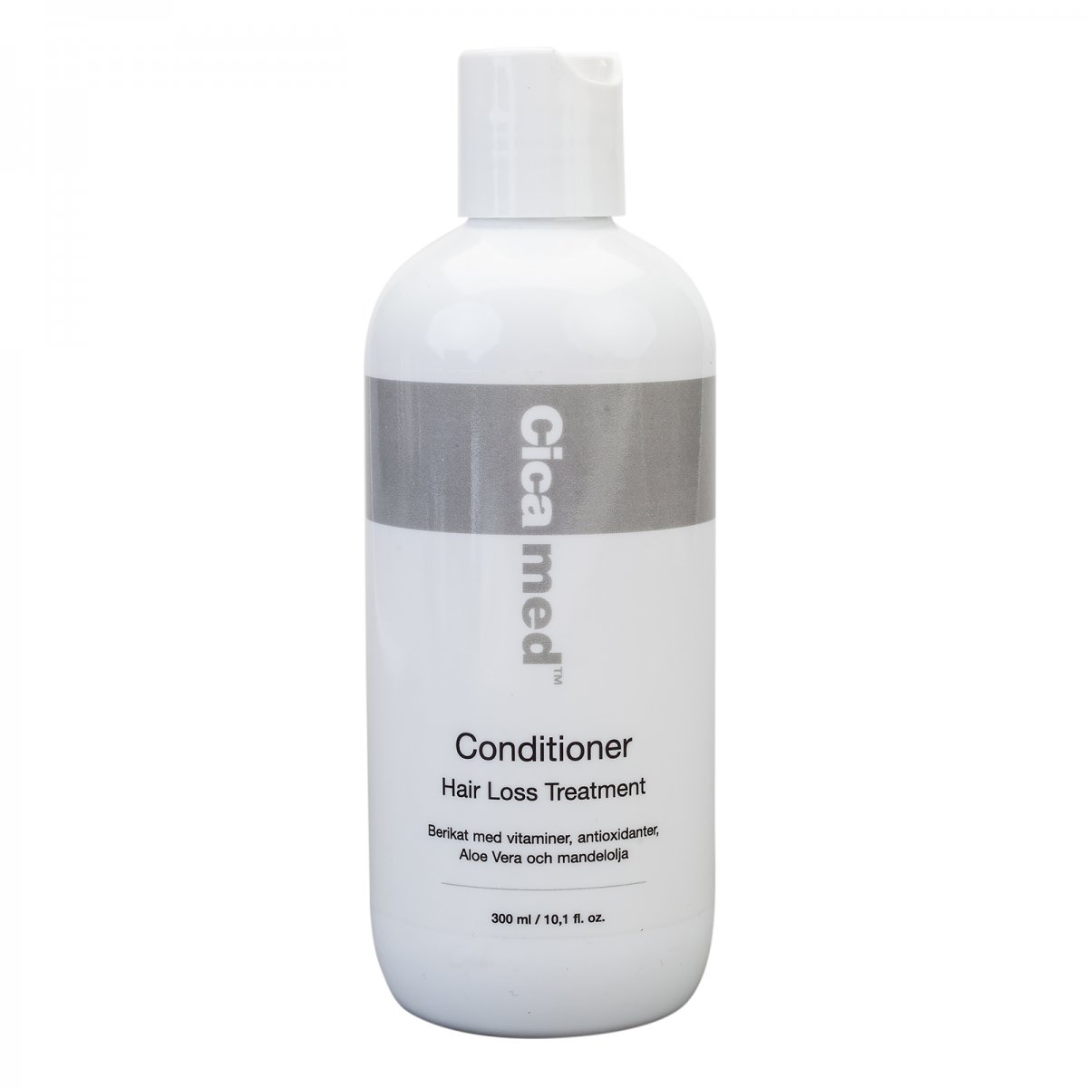 Cicamed Conditioner är ett balsam med naturliga extrakt med lugnande och fuktgivande egenskaper som verkar stärkande och skyddande på håret och återställer hårets balans. Fritt från SLS (SDS), SLES, mineraloljor, silikon och parabener. Använd efter Cicamed Shampoo 3 %. Masseras in i håret, undvik skalpen. För maximal effekt, låt verka i 3 minuter. Volym: 300 ml