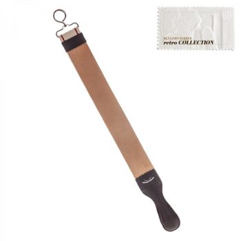 För bästa resultat vid rakning med en Cut Throat rakkniv ska den underhållas med denna hängbara strigel av äkta kalvskinn. Bredd: 45 mm Strigellädrets längd: 330 mm (användbar längd) Total längd: 405 mm Lädrets tjocklek: 2 mm Hur man använder en strigel Pälssidan, som är den blanka sidan, skall vara upp. Strigeln skall sedan hållas sträckt och kniven skall ligga med hela bladet platt mot strigeln. Du drar sedan kniven med ryggen före fram och tillbaka. Första gången du använder strigeln och sedan när strigeln känns torr skall du använda Dovos gula strigelpasta. Pastan behöver inte användas vid varje strigling, utan vid behov. Du skall använda din strigel före varje rakning i ca 1-2 min, beroende på hur vass resp slö kniven är. Se Gents instruktionsfilm om slipning och strigling. Du kan också läsa mer här!