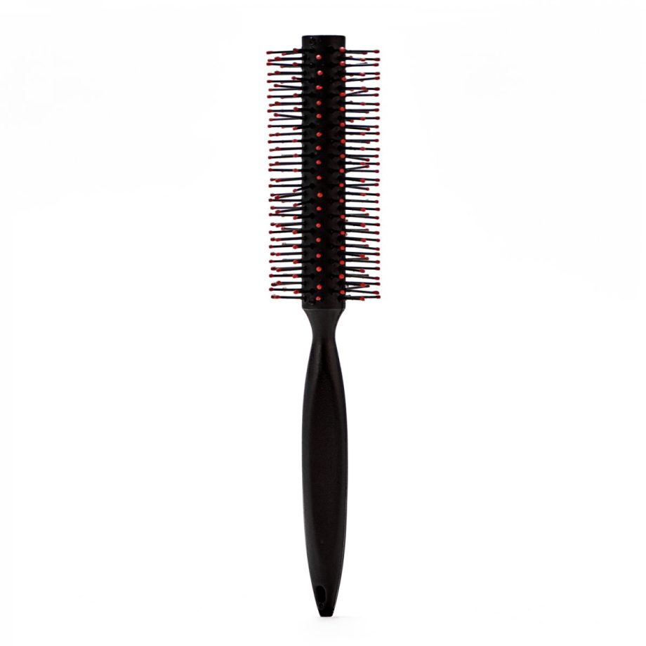 En rund skäggborste som är framtagen för att använda tillsammans med hårfön och som tål värme. Borsten är i svart plast och har små massagepiggar längst ut som stimulerar skägget och ökar blodflödet till hårrötterna. Då borsten via sina hålrum släpper igenom hårfönens luft skadas och slits inte skäggstråna på samma sätt av värmen. Resultatet blir ett smidigt och starkt skägg! Borsten passar utmärkt både för riktigt långa och något kortare skägg, samt för lockiga och tjocka skäggstrån. Dessutom går borsten bra att använda på huvudhåret. Använd med fördel borsten på nytvättat, blött skägg. Applicera skäggolja för att mjuka upp skäggstråna och använd borsten samt hårfön för att skapa en fin form på skägget. Borsta med långa drag samtidigt som du håller fönen mot borsten. Avsluta med ett skäggvax eller balm för att din styling ska hålla samman ytterligare. Total längd: 20,5 cm Diameter: 4,5 cm
