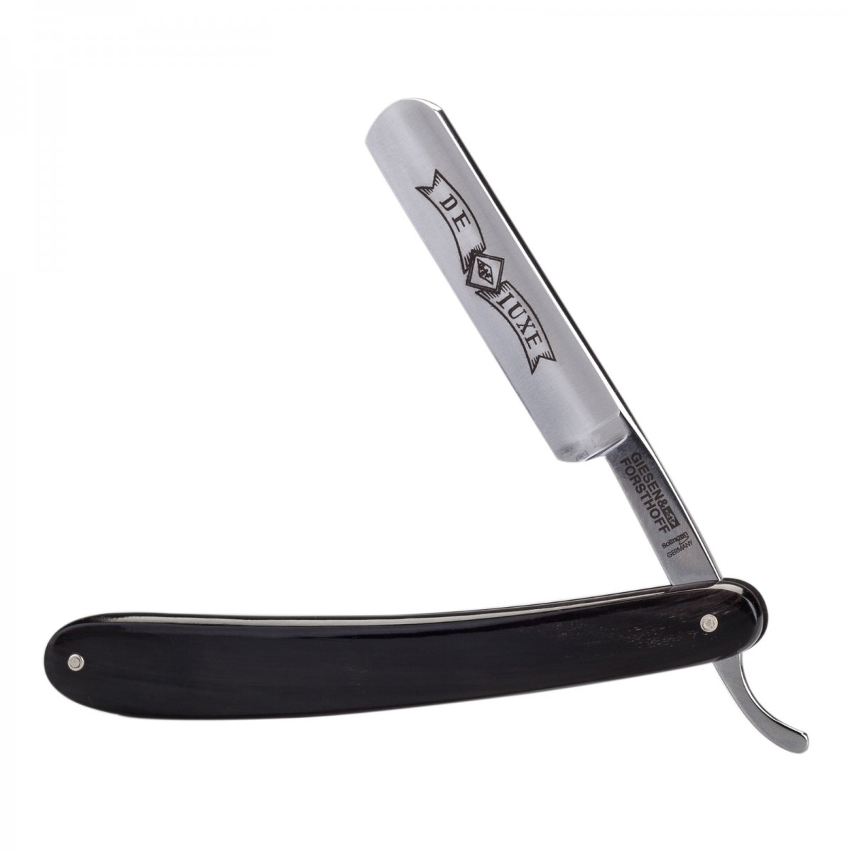 Klassisk, stilren rakkniv från tyska Giesen & Forsthoff med 5/8 tum blad av kolstål och handtag av ebenholz och texten "Timor Deluxe" etsad in i bladet. Rakkniven är ”shave ready” när den levereras, du behöver alltså inte strigla bladet innan du använder kniven för första gången. Att kniven är tillverkad i kolstål innebär att det är enklare för dig att få upp en skarp skärpa vid strigling/slipning än om bladet vore tillverkat i rostfritt stål. Du får helt enkelt en vassare egg. Det innebär också att du måste vara noga med att torka av bladet efter användning och förvara kniven torrt, annars kan det uppkomma små fläckar av rost på bladet. Skålslipad/hollow Giesen & Forstoff har tillverkat rakknivar i över 100 år. År 1923 flyttade Paul Giesen och Eugen Forsthoff tillverkningen till Baumstrasse i hjärtat av Soligens ståldistrikt. Här residerar man än idag. Och med 100-års erfarenhet innanför västen i kombination med tysk kvalitet och tyskt stål vågar vi påstå att Giesen & Forsthoff är en av Europas främsta tillverkare av rakknivar.