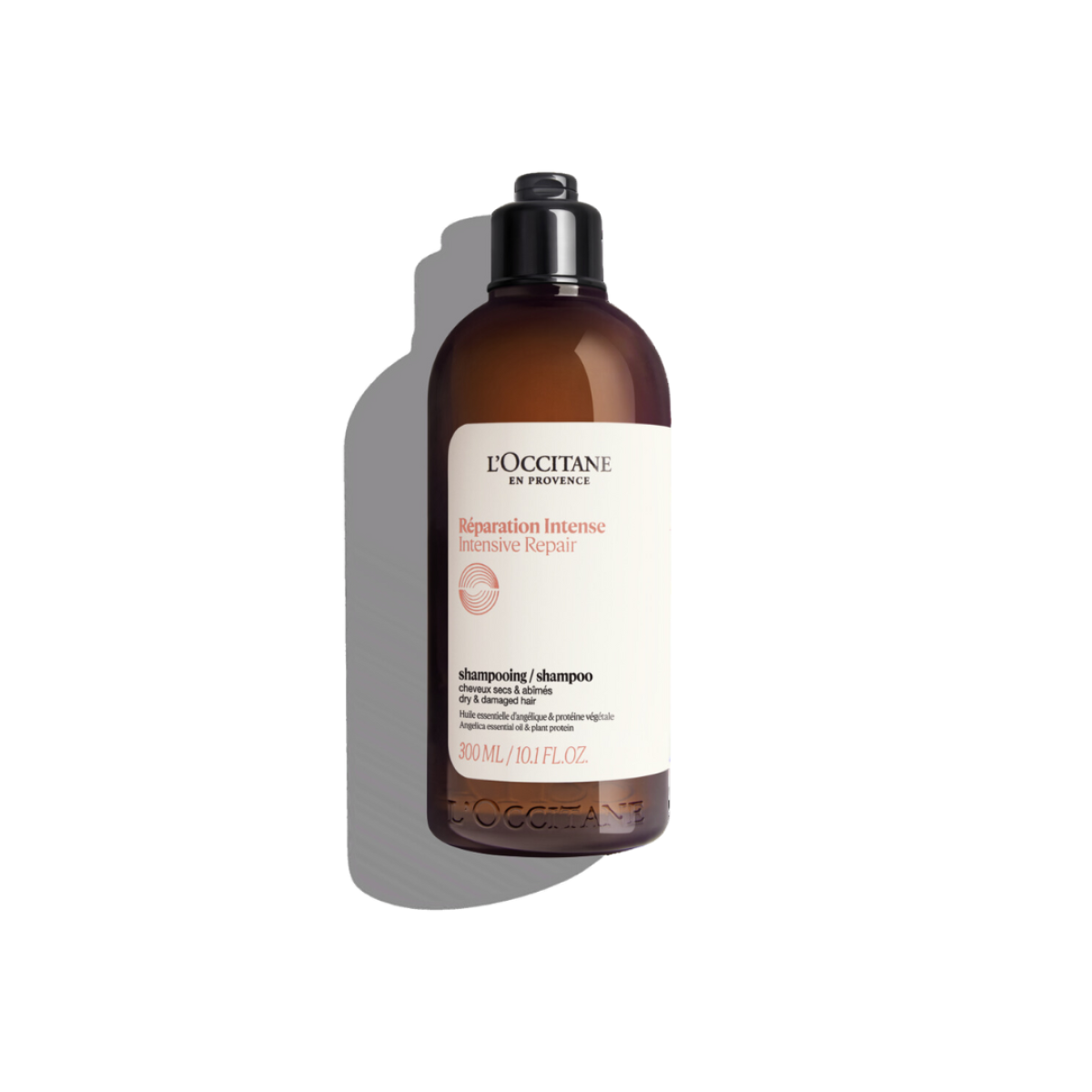 L'Occitane Intense Repair Shampoo innehåller en sammansättning av rena och naturliga eteriska oljor av Angelica (ört), Lavendel samt Pelargon som samverkar för att återuppliva torrt och skadat hår. Denna 100% vegetabiliska blandning ger vitalitet, lyster, mjukhet och glans till torrt, skadat eller färgat hår. För bästa resultat, avsluta med L'Occitane Repairing Conditioner Dry & Damaged Hair.