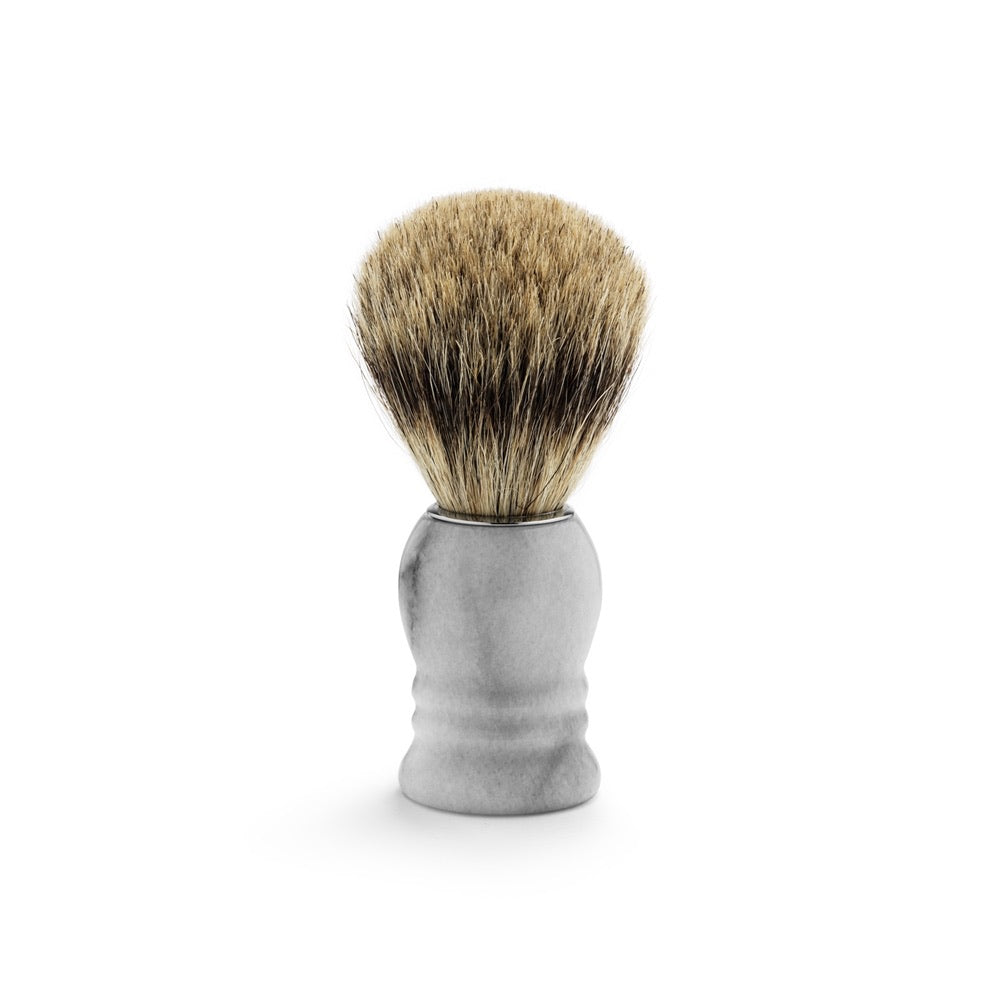 Rakborste av marmor med fylliga grävlingsstrån av bästa kvalitet. ”silvertip badger” är det mjukaste och finaste grävlingshår som finns tillgängligt.