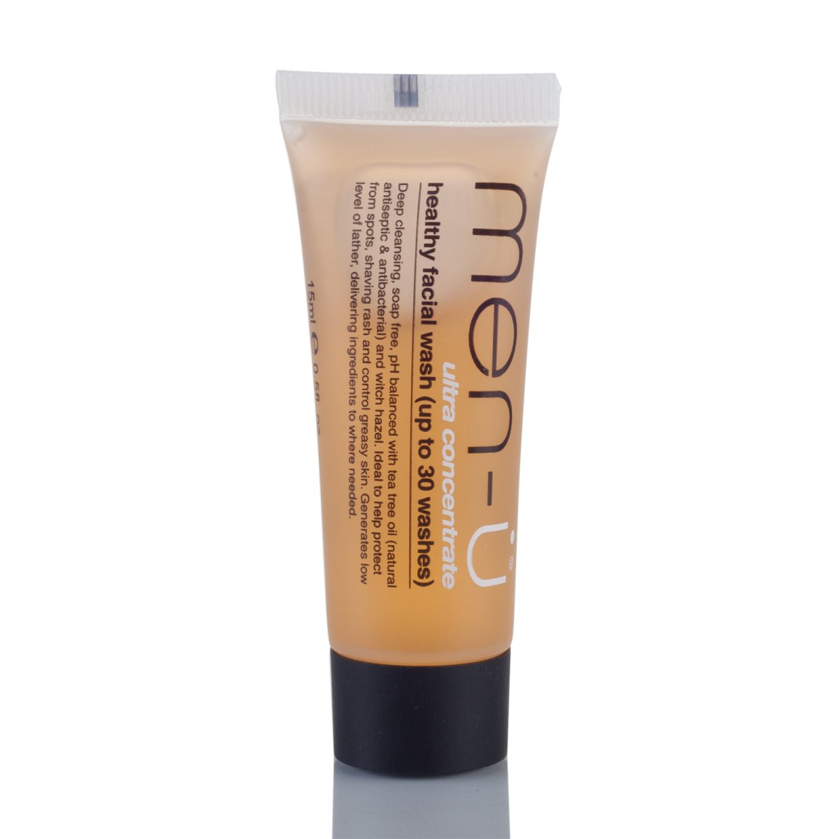 Men-ü Healthy Facial Wash är en ansiktstvätt som verkar djuprengörande, är tvålfri och återställer hudens naturliga pH-värde. Ansiktstvätten har en hög koncentration av tea-tree olja som är ett naturligt antiseptiskt och antibakteriellt medel och innehåller även trollhassel för dess lugnande och helande egenskaper. De fuktighetsbevarande ämnena Aloe Vera och Pro Vitamin B5 förhindrar att huden torkas ut. Den ultrakoncentrerade formulan levererar upp till 265 tvättar. Finns även som refillförpackning. SPECIFIKATIONER 100 ml. Praktisk pumpflaska.
