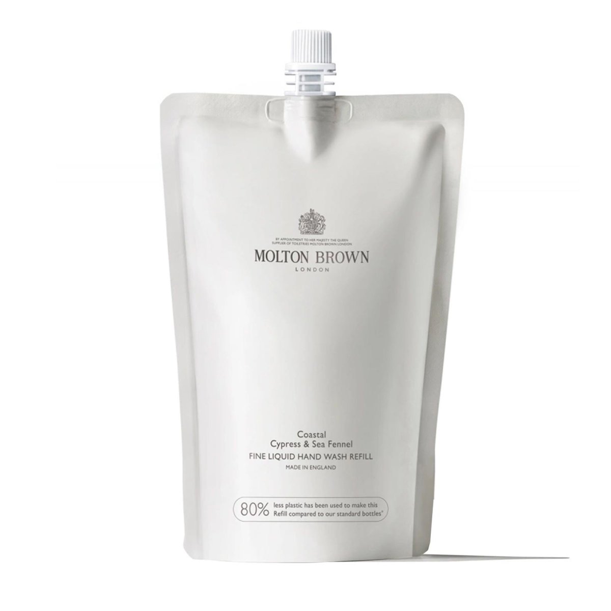 En smart refillförpackning till Molton Brown Coastal Cypress & Sea Fennel Hand Wash. Med en underbar doft som tar dig till havet; australiensisk strandsilja och cypress blandas med marina noter till en saltstänkt doft. Kombinera gärna med body lotion i samma doft för att hålla huden mjuk och len. SPECIFIKATIONER: 400 ml Refill