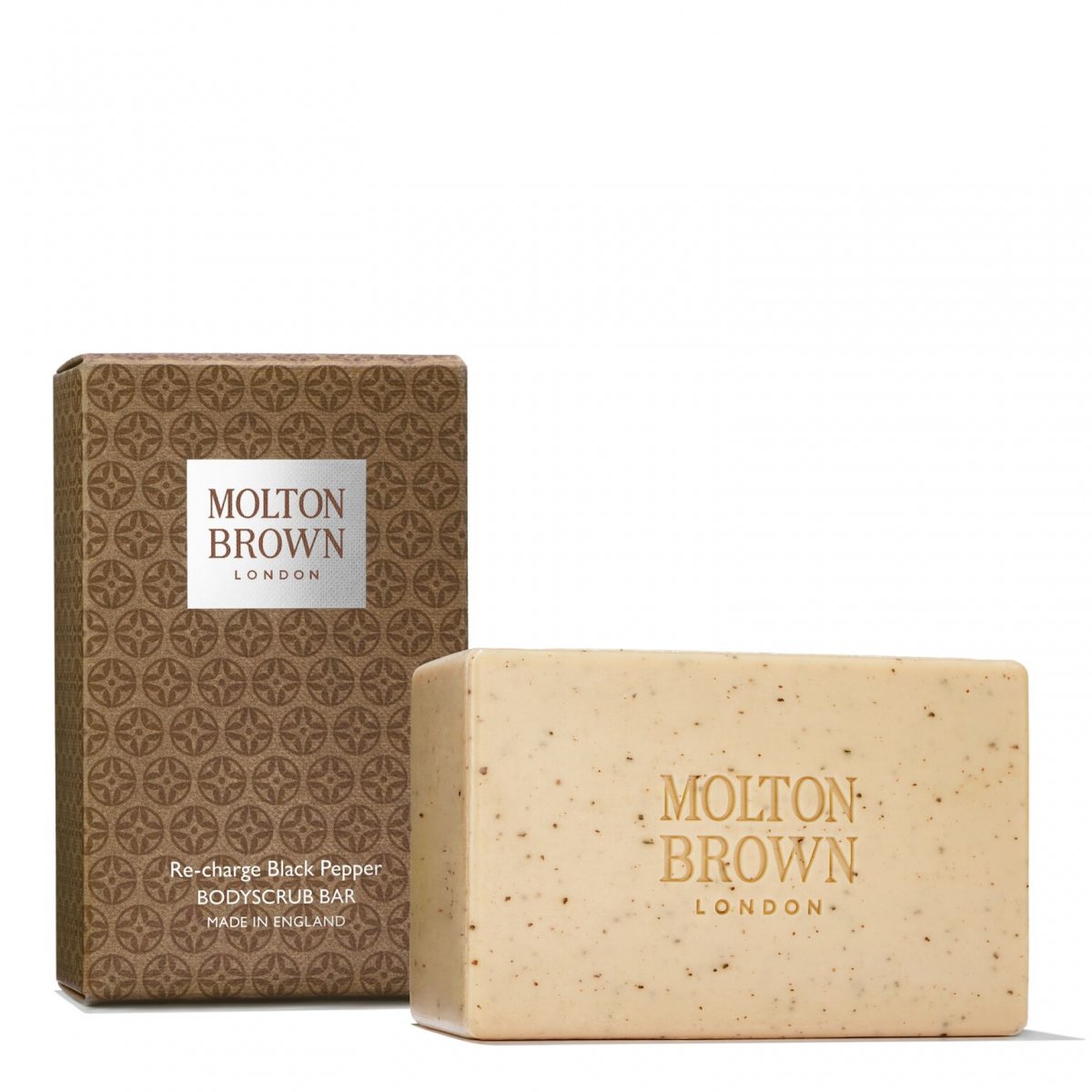 En exfolierande bar för hela kroppen som både lugnar och rengör på djupet. Baren är full av krossade pepparkorn samt olja av svartpeppar från Madagaskar. Oljan är djupt uppfriskande och har goda anti-oxidanta egenskaper. Massera baren över kroppen för att öka blodcirkulationen och få musklerna att slappna av. De krossade pepparkornen bidrar med en maskulin väldoft. Denna bodyscrub bar är en del av Molton Browns mycket populära serie med produkter som alla har doft av svartpeppar. Kryddigt, varmt, friskt och pepprigt, en perfekt kombination. Vikt: 250 g