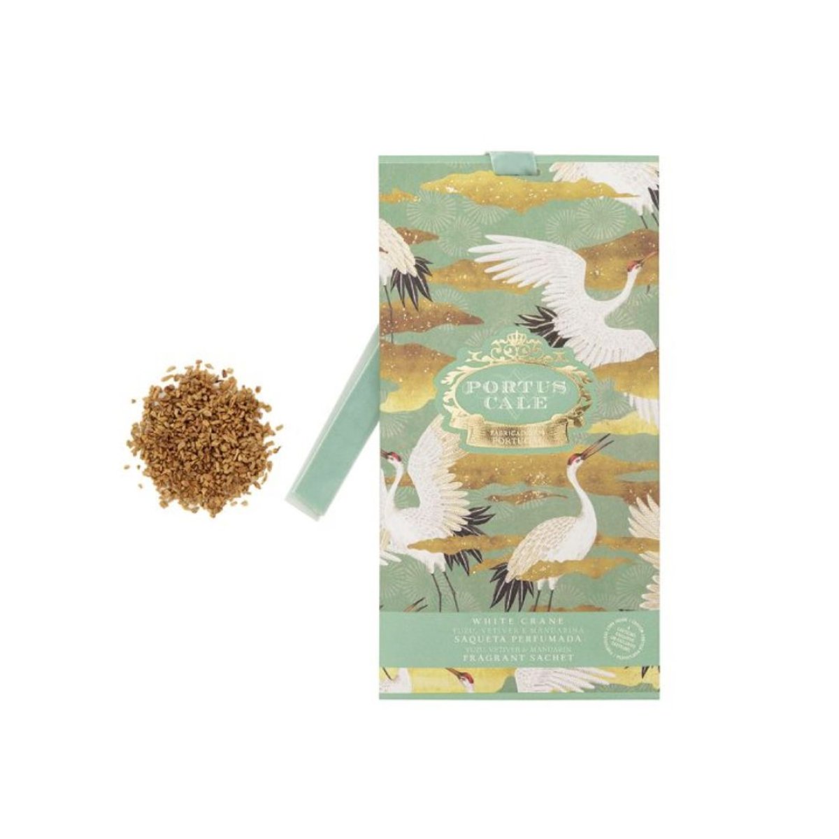 White Crane Scented Sachet är fylld med portugisisk kork, en patenterad Castelbel-teknik som ger en långvarig doft. Påsen är gjord i ett vackert dekorerat papper med ett mönster som är designat just för denna serien. Med detaljer av bladguld som ger en extra lyxig touch. En orientaliskt inspirerad doft av yuzu, vetiver och mandarin sätter pricken över i:et på denna väldoftande påse. Lägg den i byrålådan eller garderoben och den vill ge dina kläder en behaglig, fräsch doft. Innehåll: 10 g