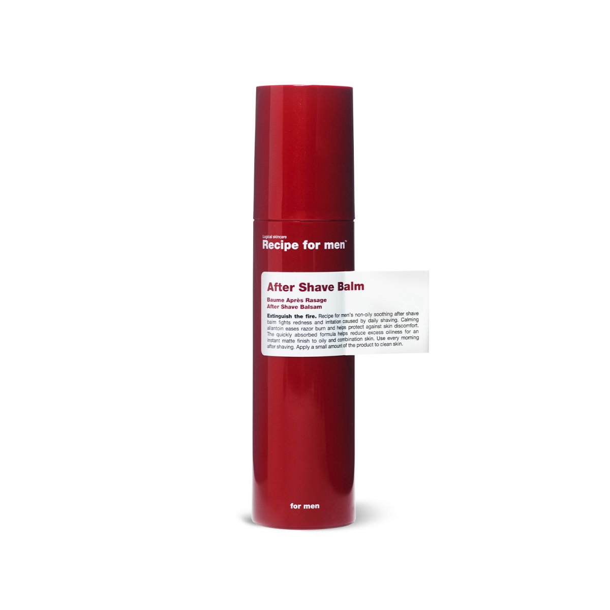 Recipe: Aftershave Balm motverkar den rödhet och irritation som kan uppstå vid daglig rakning. Den svalkar skönt och hjälper till att lindra sveda och obehag i samband med rakning, den har dessutom ingredienser som verkar närande och återfuktande. Den lätta, oljefria konsistensen gör att produkten absorberas snabbt och inte känns kladdig på huden. Recipe: Aftershave Balm hjälper dessutom till med att suga upp överskottsolja på huden för att motverka blankhet. Använd varje morgon efter rakning. Applicera en liten mängd på rengjord hud. Följ upp med någon av Recipe for men’s fuktighetskrämer om huden behöver extra fukt. Nyckelingredienserna och deras funktioner: Allantoin – antiinflammatoriskt och lugnande PhysiogenylTM – närande och återfuktande mineralkomplex Sebustop® (ingedienscocktail för män, baserad på extrakt av ingefära, kanel och pimpinella) – tar bort överskottssebum, krymper porer och motverkar glansig hy. Några rakningstips 1. Raka dig inte det första du gör på morgonen. Låt huden ”vakna” så att svullnaden som uppstår i huden under natten hinner lägga sig. Det möjliggör en närmare rakning. 2. Blöt skäggstubben med varmt vatten innan du rakar dig. Använd en vass rakhyvel och rengör bladet ofta. Raka dig med korta långsamma rörelser. Ha tålamod. 3. Raka dig alltid ”medhårs”. Det är det bästa sättet att undvika irriterad hud och invuxna skäggstrån Storlek: 100 ml