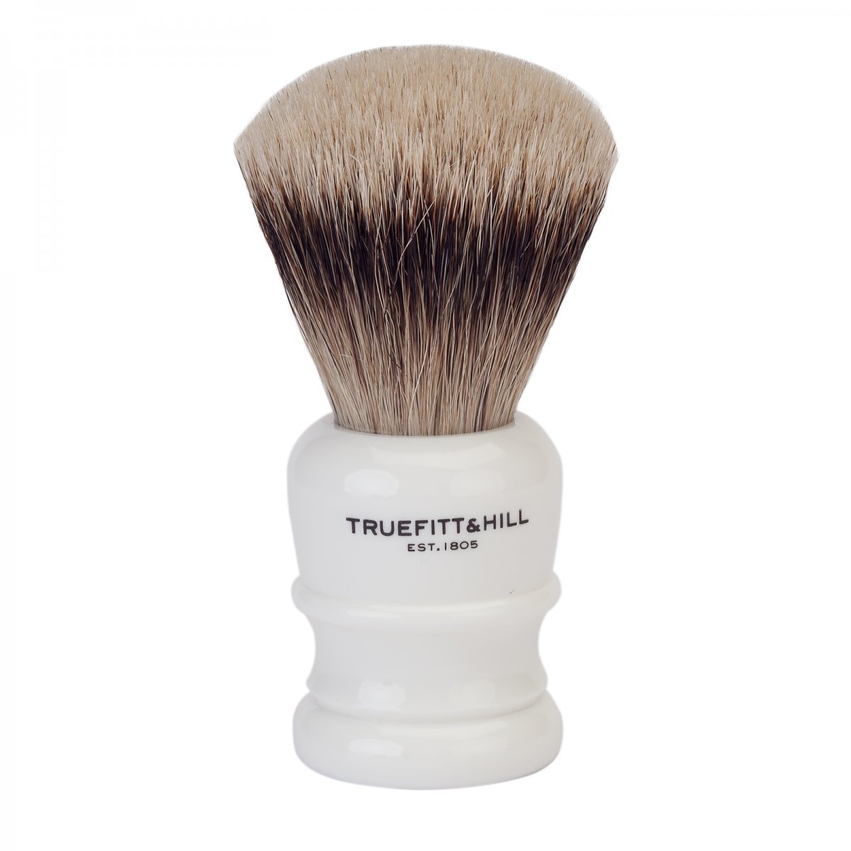 Rakborste från Truefitt & Hill i snygg design i porslinsimitation med hår av äkta grävling, Super Badger. Levereras i Truefitt & Hills snygga presentask. Ska dropptorkas. Passar till Truefitt & Hills egna ställ samt Rakborste- och Rakhyvelställ. Total höjd: 100 mm Borstens höjd: 51 mm (endast håren) Handtag höjd: 49 mm Handtag diameter: 37 mm Diameter vid hårbasen: 22 mm