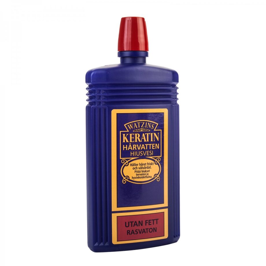 Watzins Keratin Hårvatten är en klassiker som såg dagens ljus redan 1926. Motverkar bakterieutveckling i hår och hårbotten och håller håret friskt och välvårdat med ett naturligt utseende. Massera in och borsta igenom håret. Utan fett. För fett hår. Volym: 200 ml